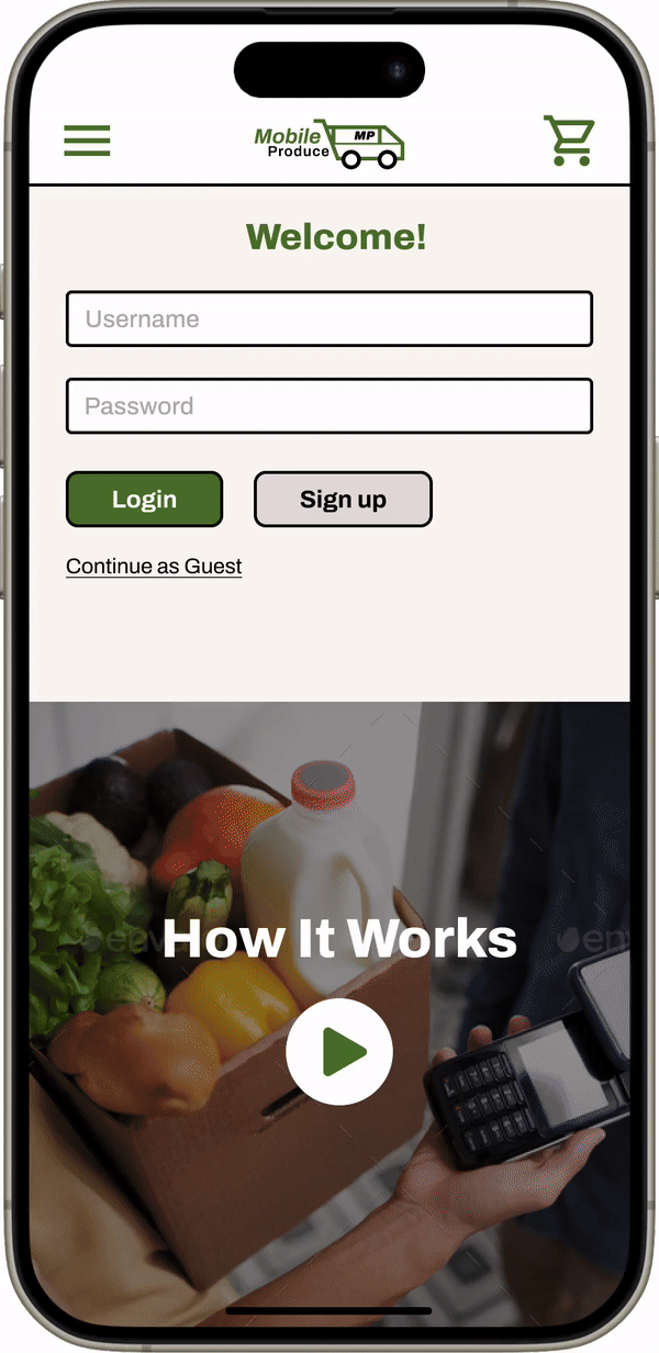 The Mobile Produce App enables people to order and schedule delivery for groceries from a grocery store near them.