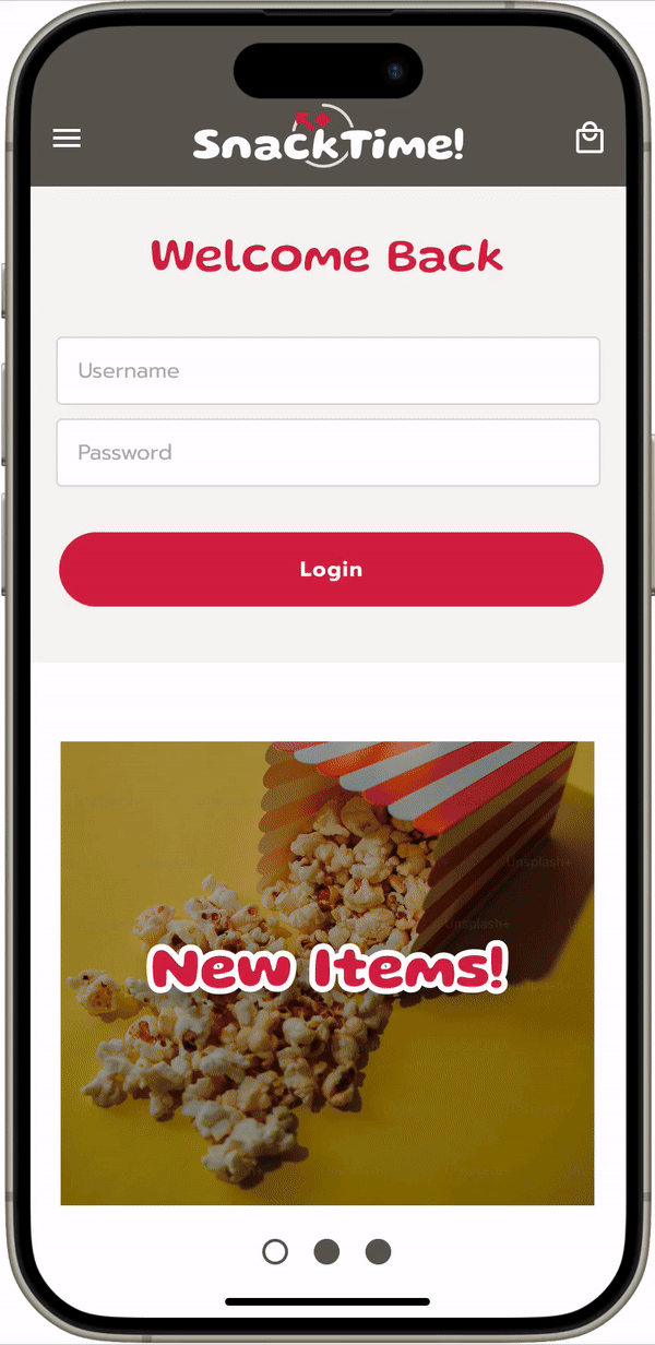- For the Selection Screen, the snack categories are organized in tabs and downward scrollable – which was more intuitive than sideways scrolling